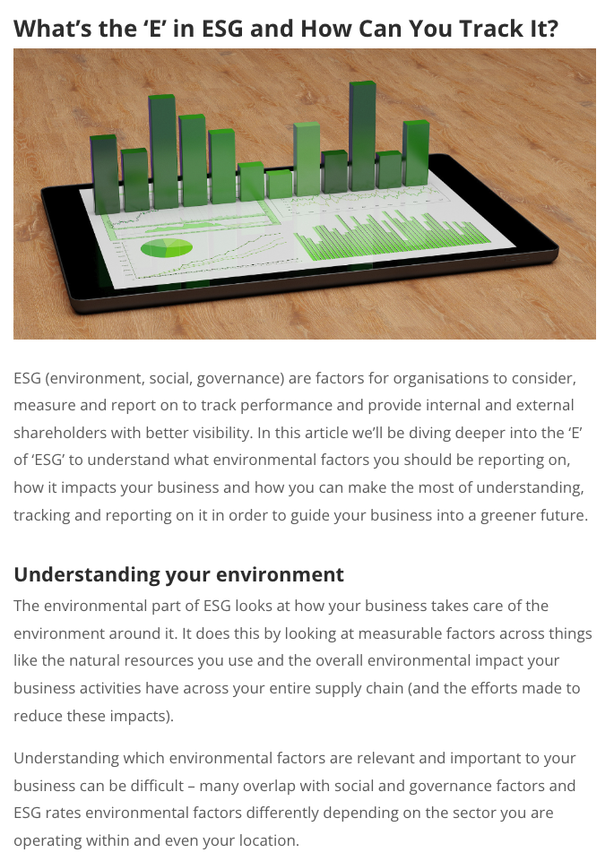 Brief: SEO blogging, key messaging and narrative copywriting for a global ESG technology brand.